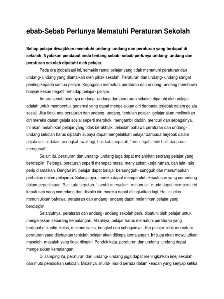 Contoh Karangan Bahagian A Kepentingan Peraturan Di Sekolah Pdf